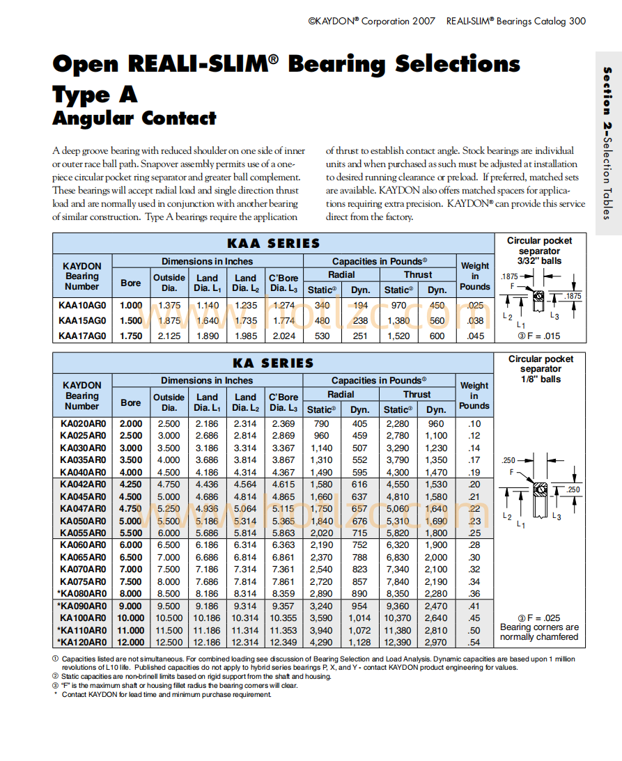 KAYDON薄壁軸承KA050AR0 KA055AR0 KA060AR0尺寸參數